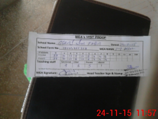 | Attendance Register | Head Teacher | MEA with School | Visit Proof |