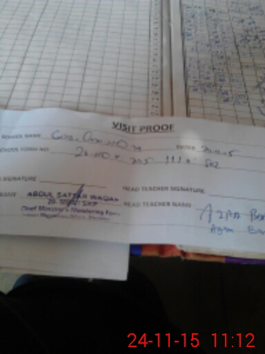 | School Visited by School Health & Nutrition Supervisor (No. of Visits) | 1 | Name1: | Rashid | Name2: | Nil |