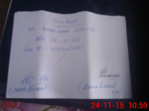 | Monitoring Date: 24-11-2015 | Start Time: 24-11-2015 10:26 AM | End Time: 24-11-2015 11:00 AM | Name of MEA: Rt**** Ja**** Hu**** | |