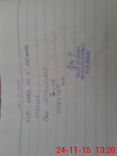 | District: BAHAWALNAGAR | Tehsil: FORT ABBAS | Markaz: FTS-IX-FEMALE | Level: Primary | |