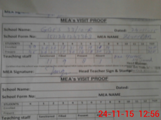 | Certified that this School was Inspected by the Undersigned MEA/DMO Today and the Information Stated Above is as Per Record. | |||||