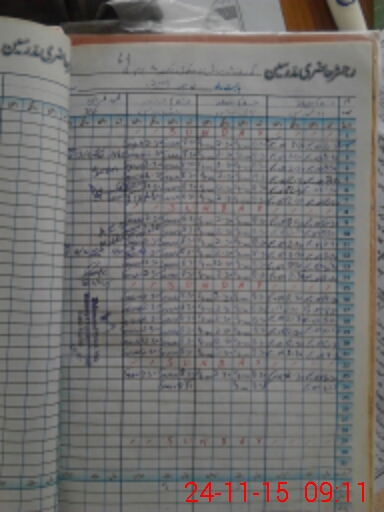 | CNIC | Full Name | Designation | R/C | Absence During Last Calender Month |