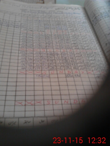 | CNIC | Full Name | Designation | R/C | Absence During Last Calender Month |