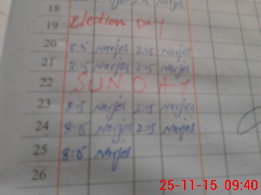 | Monitoring Date: 25-11-2015 | Start Time: 25-11-2015 09:21 AM | End Time: 25-11-2015 09:47 AM | Name of MEA: Z.**** M.Is**** | |