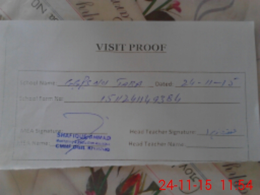 | Attendance Register | Head Teacher | MEA with School | Visit Proof |