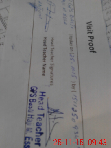 | Attendance Register | Head Teacher | MEA with School | Visit Proof |