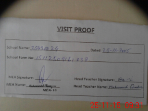 | Attendance Register | Head Teacher | MEA with School | Visit Proof |