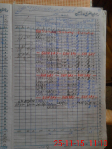| CNIC | Full Name | Designation | R/C | Absence During Last Calender Month |