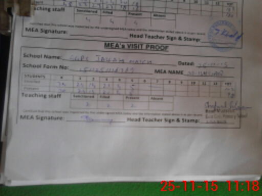 | Attendance Register | Head Teacher | MEA with School | Visit Proof |