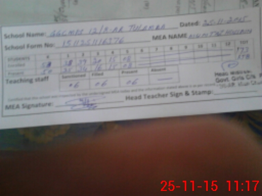 | Certified that this School was Inspected by the Undersigned MEA/DMO Today and the Information Stated Above is as Per Record. | |||||