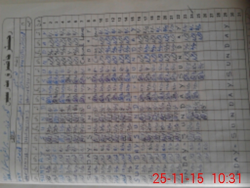 | CNIC | Full Name | Designation | R/C | Absence During Last Calender Month |