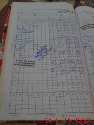 | CNIC | Full Name | Designation | R/C | Absence During Last Calender Month |