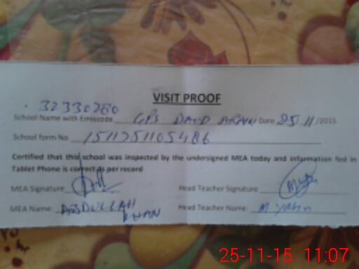 | Attendance Register | Head Teacher | MEA with School | Visit Proof |
