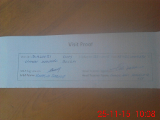 | Attendance Register | Head Teacher | MEA with School | Visit Proof |