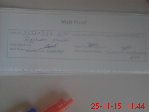 | Attendance Register | Head Teacher | MEA with School | Visit Proof |