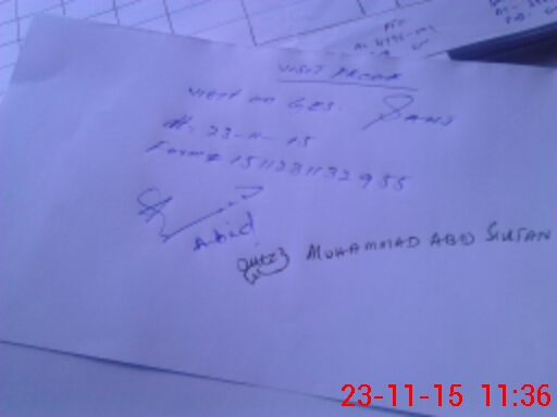 | Monitoring Date: 23-11-2015 | Start Time: 23-11-2015 11:19 AM | End Time: 23-11-2015 11:38 AM | Name of MEA: Rt**** Ab**** | |