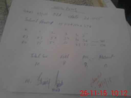 | Monitoring Date: 26-11-2015 | Start Time: 26-11-2015 09:45 AM | End Time: 26-11-2015 10:22 AM | Name of MEA: MU**** SH**** | |