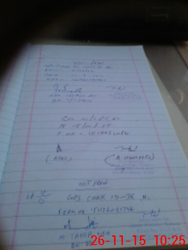 | Monitoring Date: 26-11-2015 | Start Time: 26-11-2015 08:56 AM | End Time: 26-11-2015 10:29 AM | Name of MEA: Mu**** Ta**** BN**** 26 | |