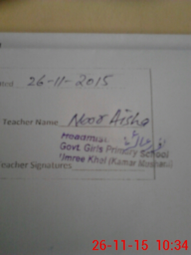 | District: MIANWALI | Tehsil: ISA KHEL | Markaz: KAMMAR MUSHANI NO.1-FEMALE | Level: Primary | |