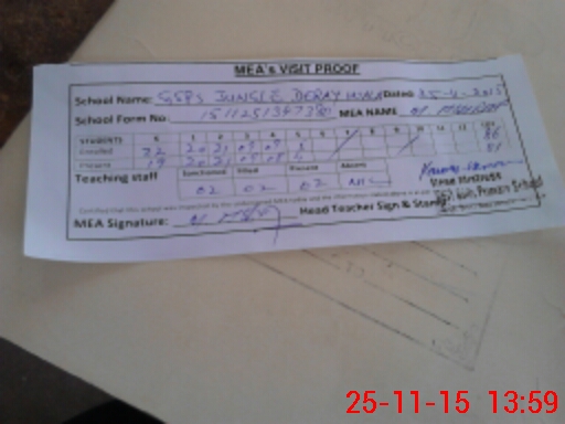 | Attendance Register | Head Teacher | MEA with School | Visit Proof |