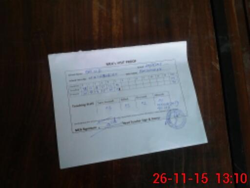 | Monitoring Date: 26-11-2015 | Start Time: 26-11-2015 12:38 PM | End Time: 26-11-2015 01:11 PM | Name of MEA: Ra**** Sh**** Al**** ex**** | |