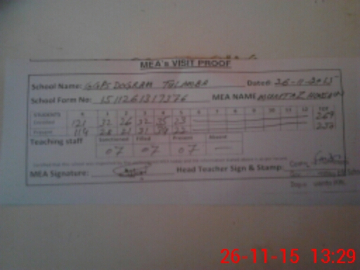 | Certified that this School was Inspected by the Undersigned MEA/DMO Today and the Information Stated Above is as Per Record. | |||||