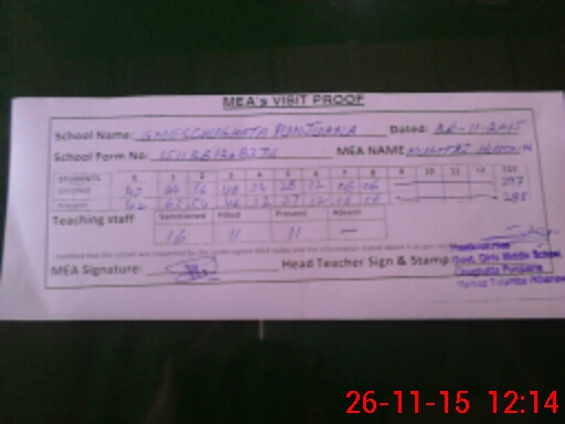 | Certified that this School was Inspected by the Undersigned MEA/DMO Today and the Information Stated Above is as Per Record. | |||||