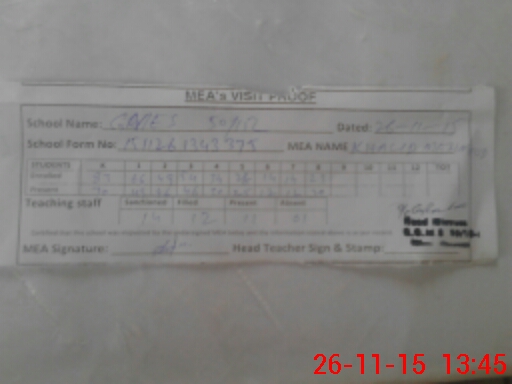 | Attendance Register | Head Teacher | MEA with School | Visit Proof |