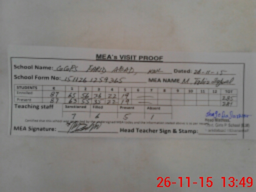 | Certified that this School was Inspected by the Undersigned MEA/DMO Today and the Information Stated Above is as Per Record. | |||||