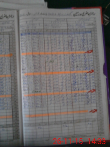 | CNIC | Full Name | Designation | R/C | Absence During Last Calender Month |