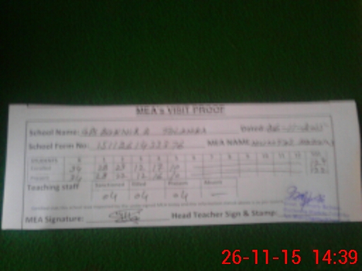 | Attendance Register | Head Teacher | MEA with School | Visit Proof |