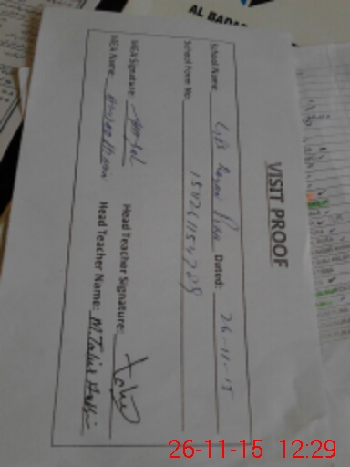 | Attendance Register | Head Teacher | MEA with School | Visit Proof |