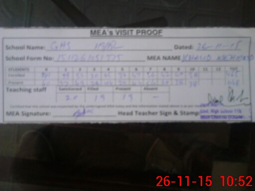 | Certified that this School was Inspected by the Undersigned MEA/DMO Today and the Information Stated Above is as Per Record. | |||||