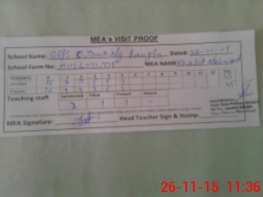 | Attendance Register | Head Teacher | MEA with School | Visit Proof |