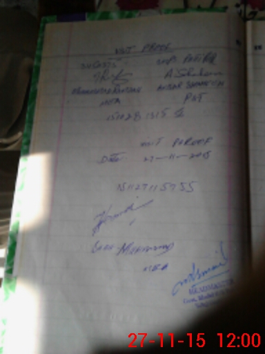 | Monitoring Date: 27-11-2015 | Start Time: 27-11-2015 11:25 AM | End Time: 27-11-2015 12:12 PM | Name of MEA: Sh**** Mu**** | |