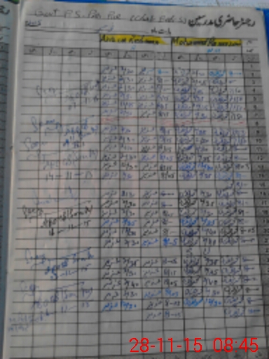 | CNIC | Full Name | Designation | R/C | Absence During Last Calender Month |