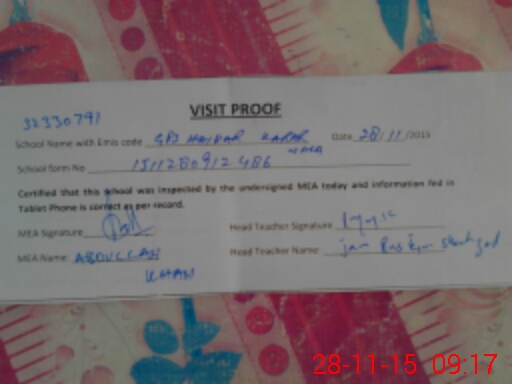| Attendance Register | Head Teacher | MEA with School | Visit Proof |
