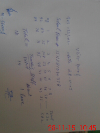 | Monitoring Date: 28-11-2015 | Start Time: 28-11-2015 09:59 AM | End Time: 28-11-2015 10:47 AM | Name of MEA: MU**** SH**** | |