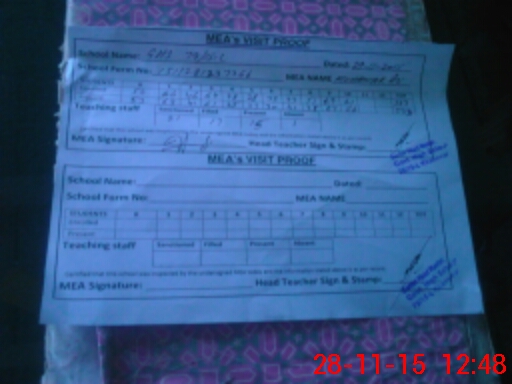 | Attendance Register | Head Teacher | MEA with School | Visit Proof |