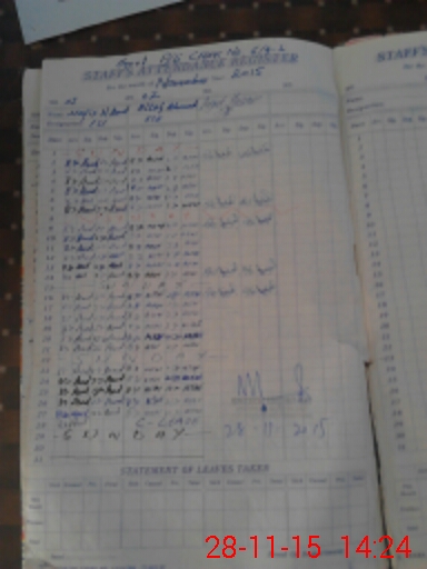 | CNIC | Full Name | Designation | R/C | Absence During Last Calender Month |