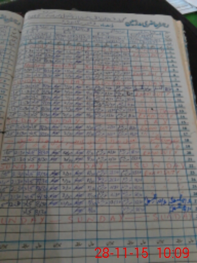 | CNIC | Full Name | Designation | R/C | Absence During Last Calender Month |