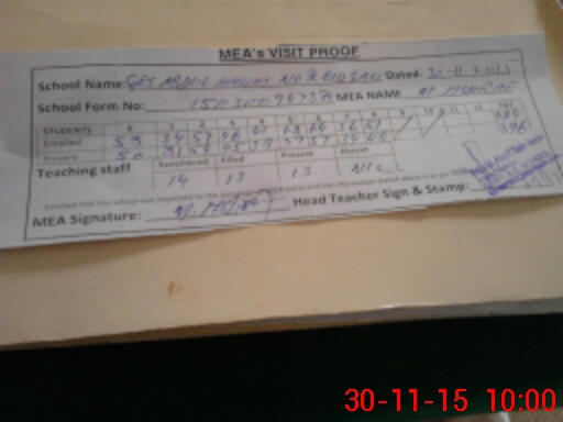 | Attendance Register | Head Teacher | MEA with School | Visit Proof |