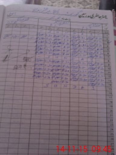 | CNIC | Full Name | Designation | R/C | Absence During Last Calender Month |