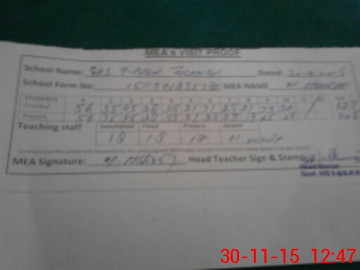 | Attendance Register | Head Teacher | MEA with School | Visit Proof |