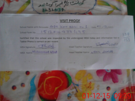 | Attendance Register | Head Teacher | MEA with School | Visit Proof |