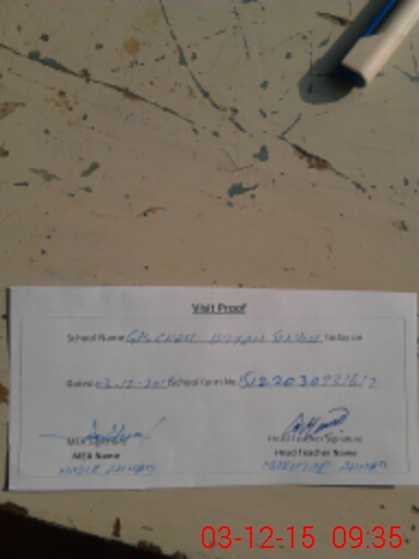 | Attendance Register | Head Teacher | MEA with School | Visit Proof |