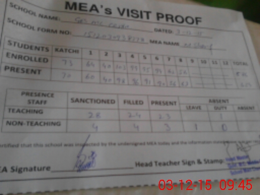 | Certified that this School was Inspected by the Undersigned MEA/DMO Today and the Information Stated Above is as Per Record. | |||||