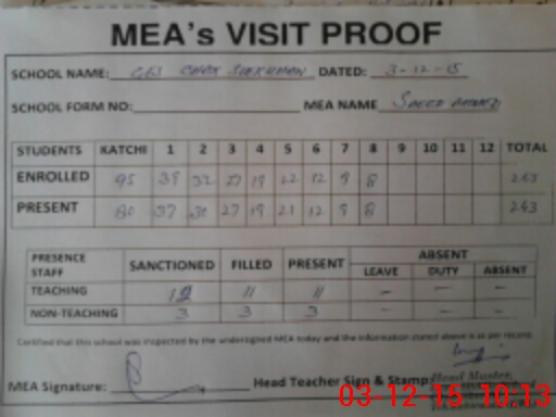 | EMIS Code: 36410053 | Name of School: GES CHAK SHER KHAN, KABIRWALA | |||
