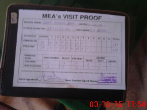 | Attendance Register | Head Teacher | MEA with School | Visit Proof |