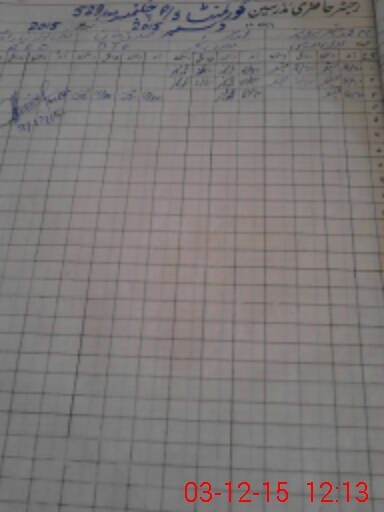| CNIC | Full Name | Designation | R/C | Absence During Last Calender Month |